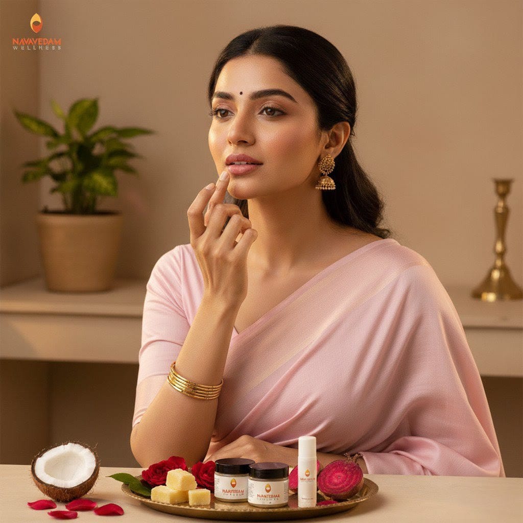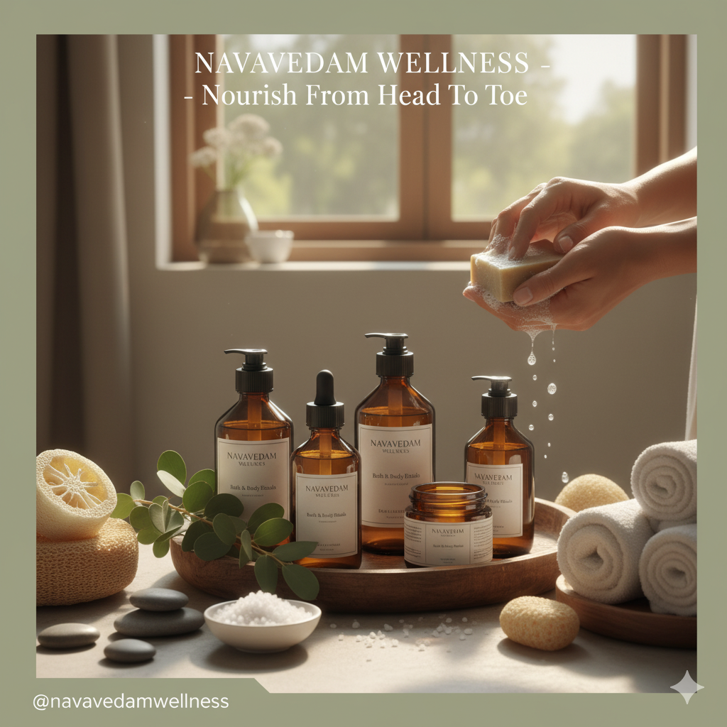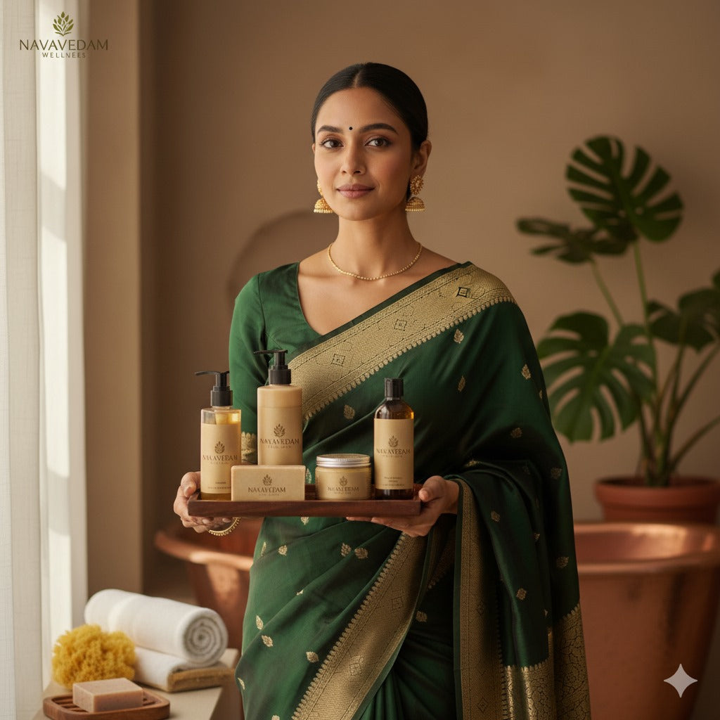 Every Navavedam product is lovingly handmade using 100% natural ingredients — no shortcuts, no harsh chemicals, just pure care from nature to you