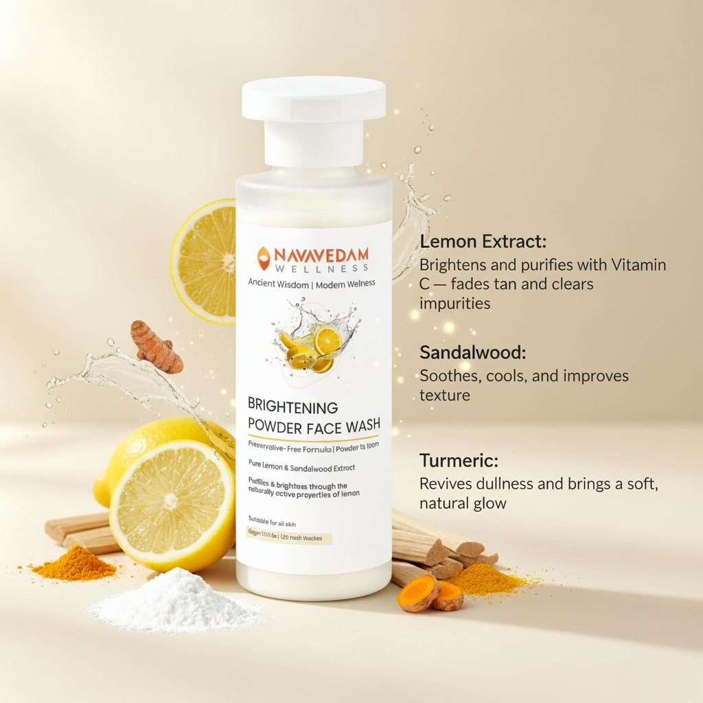 Let your mornings begin with nature’s brightness. This fine botanical powder transforms a simple cleanse into a radiant ritual. Blended with lemon extract, sandalwood, and turmeric, it gently lifts dullness, balances oil, and restores your skin’s natural clarity — one mindful wash at a time.