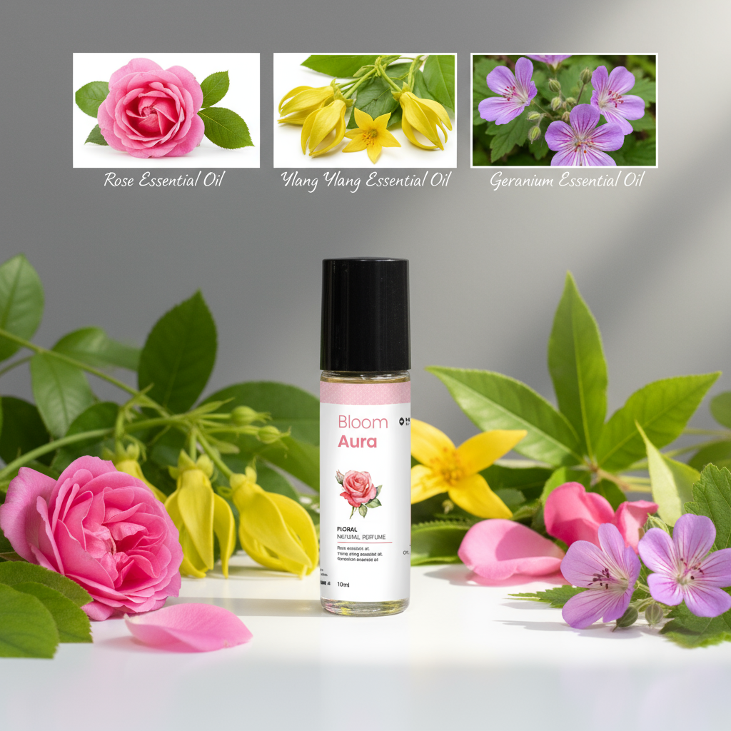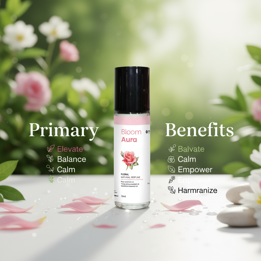 A soft, floral perfume featuring rose, jasmine, and geranium. It refreshes your aura, lifts your spirits, and complements every moment with natural elegance.