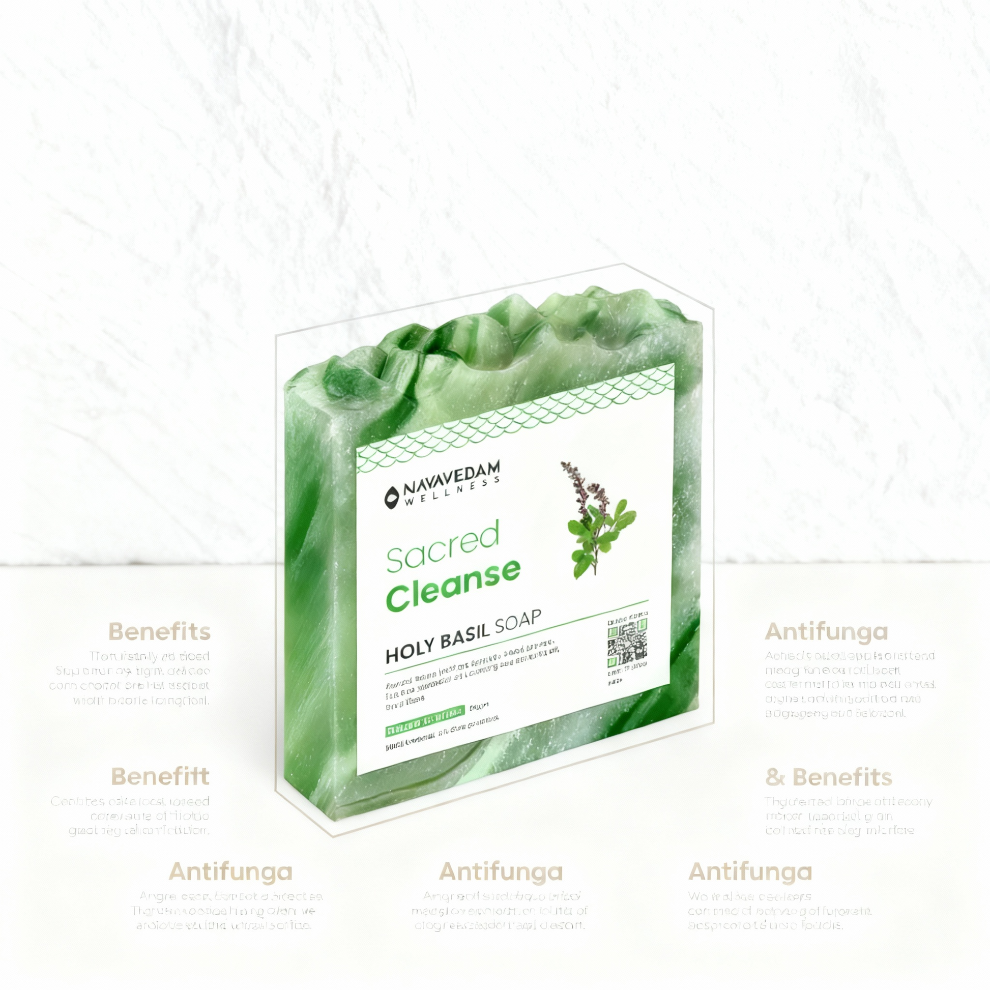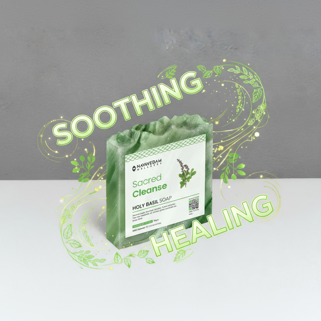 A purifying soap made with Tulasi (Holy Basil), known for its antibacterial and detoxifying properties. It gently cleanses, clears impurities, and keeps skin fresh and healthy.