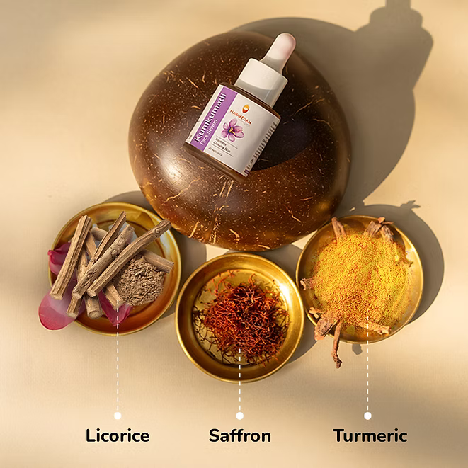Born from the timeless wisdom of botanicals, this golden elixir blends pure saffron, sandalwood, and rose to bring out your skin’s natural radiance. Light in texture yet deeply nourishing, it brightens uneven tone, reduces dullness, and restores that inner glow — naturally.