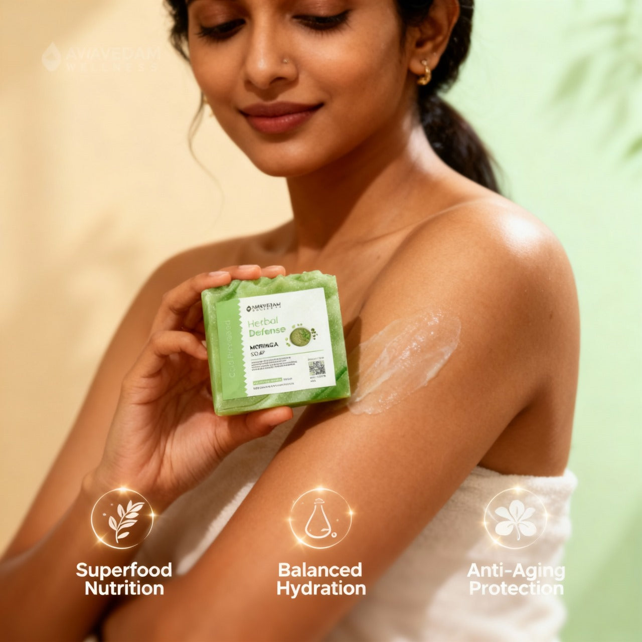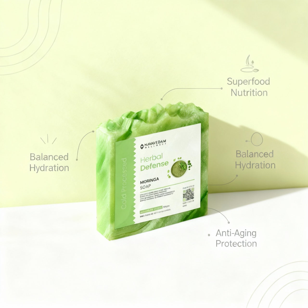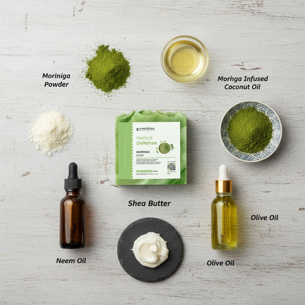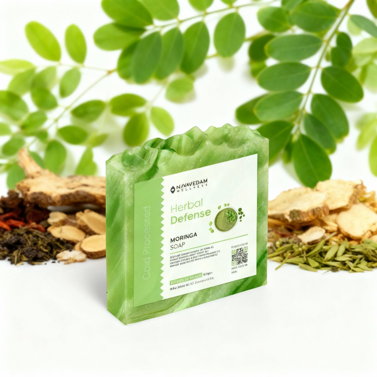 Handcrafted with cold-pressed moringa oil and herbal extracts, this soap gently cleanses impurities while nourishing and refreshing dull, fatigued skin.