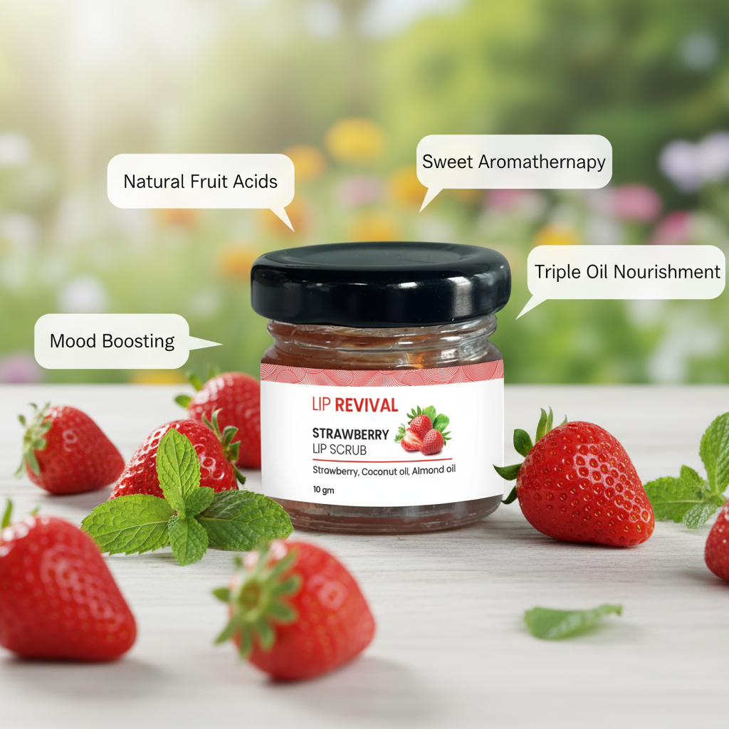 A mild exfoliating lip scrub infused with strawberry and honey that buffs away dead skin, leaving lips silky smooth and naturally radiant.