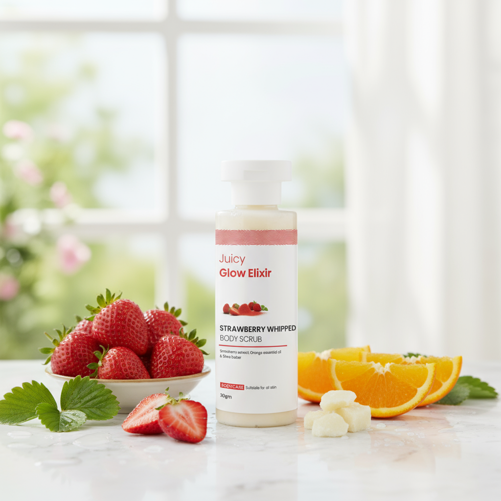 A creamy whipped scrub packed with strawberry and aloe extracts that gently polishes and moisturizes for smooth, glowing skin.